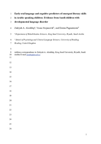 Early oral language and cognitive predictors of emergent literacy skills in Arabic-speaking children: evidence from Saudi children with developmental language disorder.