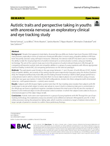 Autistic traits and perspective taking in youths with anorexia nervosa: an exploratory clinical and eye tracking study.