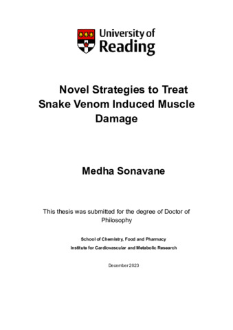 Sonavane, M. (2024) Novel strategies to treat snake venom induced muscle damage. PhD thesis, University of Reading. doi: 10.48683/1926.00117785