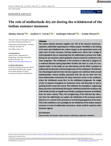 The role of midlatitude dry air during the withdrawal of the Indian summer monsoon.