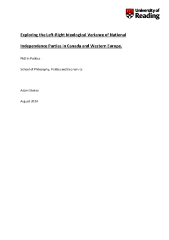 Stokes, A. (2024) Exploring the left-right ideological variance of national independence parties in Canada and Western Europe. PhD thesis, University of Reading. doi: 10.48683/1926.00117897