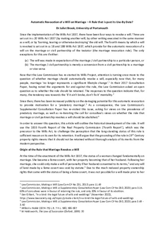 Automatic revocation of a will on marriage – a rule that is past its use-by date?