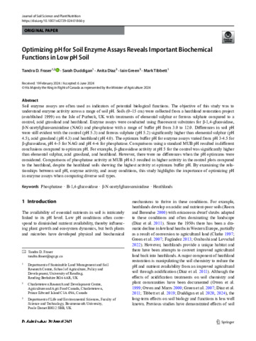 Fraser, T. D. orcid id iconORCID: https://orcid.org/0000-0002-6272-5387, Duddigan, S. orcid id iconORCID: https://orcid.org/0000-0002-6228-4462, Diaz, A., Green, I. and Tibbett, M. orcid id iconORCID: https://orcid.org/0000-0003-0143-2190 (2024) Optimizing pH for soil enzyme assays reveals important biochemical functions in low pH soil. Journal of Soil Science and Plant Nutrition. ISSN 0718-9516 doi: 10.1007/s42729-024-01866-y