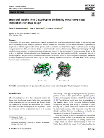 Structural Insights into G-quadruplex binding by metal complexes: implications for drug design.