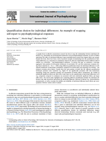 Morriss, J., Biagi, N. orcid id iconORCID: https://orcid.org/0000-0002-7119-0767 and Wake, S. (2024) Quantification choices for individual differences: an example of mapping self-report to psychophysiological responses. International Journal of Psychophysiology, 205. 112427. ISSN 1872-7697 doi: 10.1016/j.ijpsycho.2024.112427