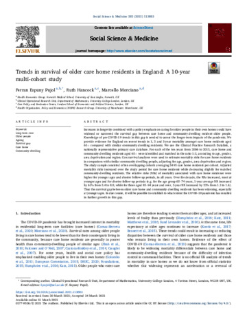 Trends in survival of older care home residents in England: a 10-year multi-cohort study.