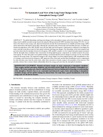 Liu, Z., Franzke, C. L. E., Novak, L., Tailleux, R. orcid id iconORCID: https://orcid.org/0000-0001-8998-9107 and Lembo, V. (2024) A systematic local view of the long-term changes of the atmospheric energy cycle. Journal of Climate, 37 (23). pp. 6413-6434. ISSN 1520-0442 doi: 10.1175/jcli-d-24-0106.1