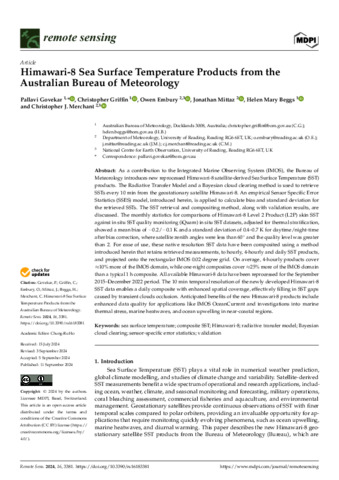 Himawari-8 sea surface temperature products from the Australian Bureau of Meteorology.