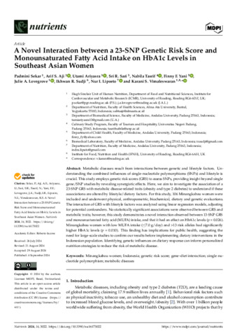 A novel interaction between a 23-SNP genetic risk score and monounsaturated fatty acid intake on HbA1c levels in Southeast Asian women.