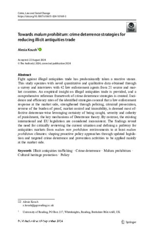 Koush, A. orcid id iconORCID: https://orcid.org/0000-0003-1163-0916 (2024) Towards malum prohibitum: crime deterrence strategies for reducing illicit antiquities trade. Crime, Law and Social Change. ISSN 1573-0751 doi: 10.1007/s10611-024-10169-3