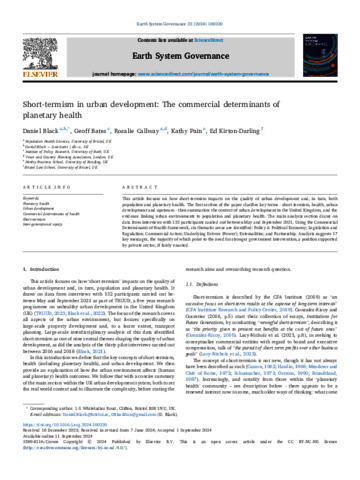 47. Black, D., et al., Overcoming systemic barriers preventing healthy urban development in the UK: main findings from interviewing senior decision-makers during a three-year planetary health pilot. Journal of Urban Health, 2021.