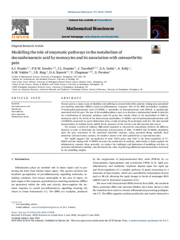 Modelling the role of enzymatic pathways in the metabolism of docosahexaenoic acid by monocytes and its association with osteoarthritic pain.