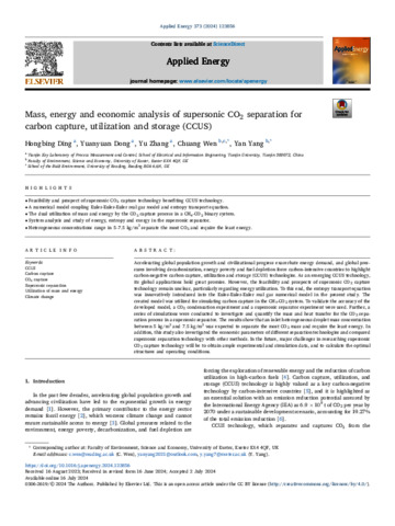 Mass, energy and economic analysis of supersonic CO2 separation for carbon capture, utilization and storage (CCUS).