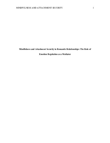 Mindfulness and attachment security in romantic relationships: The role of emotion regulation as a mediator.
