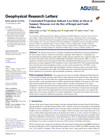 Constrained projections indicate less delay in onset of summer monsoon over the Bay of Bengal and South China Sea.