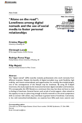 Xiao Y and Lutz C (2024) Wayfarers in cyberspace: A temporal investigation of digital nomads based on liquid modernity theory. Journal of Travel Research. Epub ahead of print 5 February 2024. DOI: 10.1177/00472875231224242.