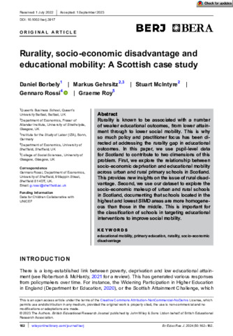 Rurality, socio‐economic disadvantage and educational mobility: a Scottish case study.