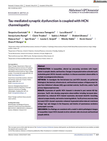 ORCID: https://orcid.org/0000-0002-8741-5094, Biasetti, L., Rumpf, S.-L., Troakes, C., Pollack, S. J., Ukwesa, S., Sun, H., Kraev, I., Serpell, L. C., Noble, W., Staras, K. and Hanger, D. P.