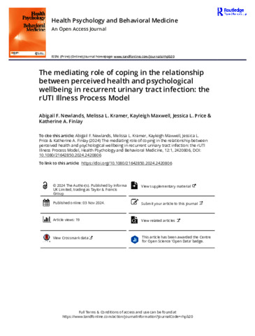 The mediating role of coping in the relationship between perceived health and psychological wellbeing in recurrent urinary tract infection: The rUTI Illness Process Model.
