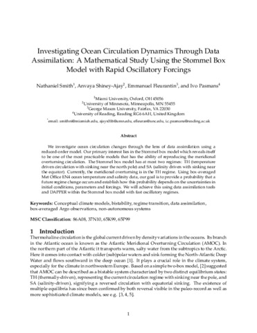 Investigating ocean circulation dynamics through data assimilation: a mathematical study using the Stommel box model with rapid oscillatory forcings.