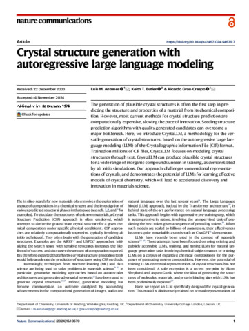 [89] Antunes, L. lantunes/CrystaLLM: CrystaLLM v1.0 (2024). URL https://doi.org/10.5281/zenodo.13883399.
