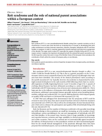 Rett syndrome (RTT) is a rare neurodevelopmental disorder arising from a genetic mutation on the X chromosome. In recent years there has been an increasing focus in Europe on developing links, both within and between countries, between researchers, clinicians, therapists, individuals with RTT and their families or caregivers in order to maximise approaches towards treatment and long-term-management of the disorder. This paper seeks to place RTT, especially the support of families living with RTT, in a European context. It explores the important role played by both the national Rett parent associations and the Rett expertise centres that exist in many of the Member States of the European Union and places the contribution of both within the context of European policy on rare diseases.