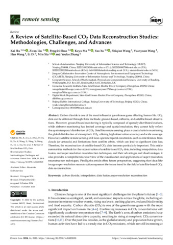 Hu, K. orcid id iconORCID: https://orcid.org/0000-0001-7181-9935, Liu, Z. orcid id iconORCID: https://orcid.org/0000-0002-6856-9274, Shao, P. orcid id iconORCID: https://orcid.org/0000-0001-5001-7415, Ma, K. orcid id iconORCID: https://orcid.org/0000-0001-9714-8930, Xu, Y. orcid id iconORCID: https://orcid.org/0000-0003-3564-399X, Wang, S., Wang, Y., Wang, H., Di, L., Xia, M. orcid id iconORCID: https://orcid.org/0000-0003-4681-9129 and Zhang, Y. (2024) A review of satellite-based CO2 data reconstruction studies: methodologies, challenges, and advances. Remote Sensing, 16 (20). 3818. ISSN 2072-4292 doi: 10.3390/rs16203818