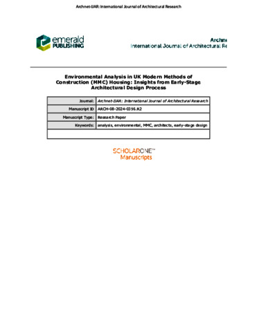 Environmental analysis in UK Modern Methods of Construction (MMC) housing: insights from early-stage architectural design process.
