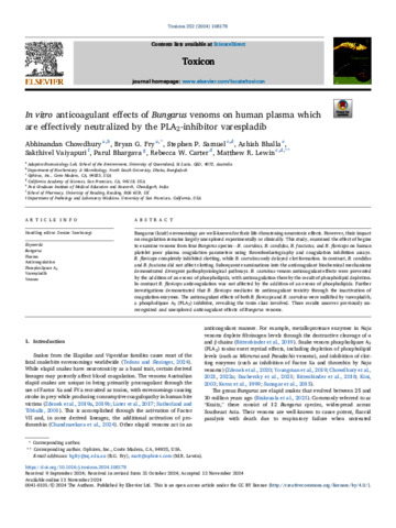 Chowdhury, A., Fry, B. G., Samuel, S. P., Bhalla, A., Vaiyapuri, S. ORCID: https://orcid.org/0000-0002-6006-6517, Bhargava, P., Carter, R. W. and Lewin, M. R.