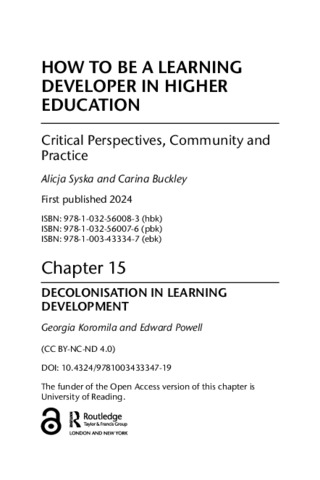Koromila, G. and Powell, E. (2023) Decolonisation in learning development. In: Syska, A. and Buckley, C. (eds.) How to be a learning developer in higher education. Routledge, London, pp. 135-143. ISBN 9781032560083 doi: 10.4324/9781003433347-19