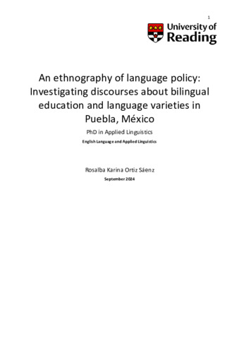 Ortiz Sáenz, R. K. (2024) An ethnography of language policy: investigating discourses about bilingual education and language varieties in Puebla, México. PhD thesis, University of Reading. doi: 10.48683/1926.00119552