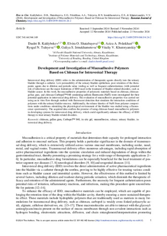 Kaldybekov, D. B., Shatabayeva, E. O., Polatkhan, A. A., Tuleyeva, R. N., Irmukhametova, G. S. and Khutoryanskiy, V. V. ORCID: https://orcid.org/0000-0002-7221-2630