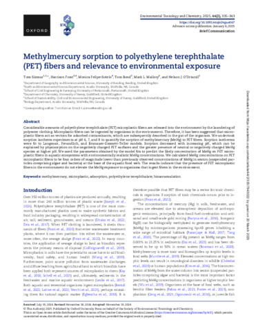 Methylmercury sorption to polyethylene terephthalate (PET) fibres and relevance to environmental exposure.