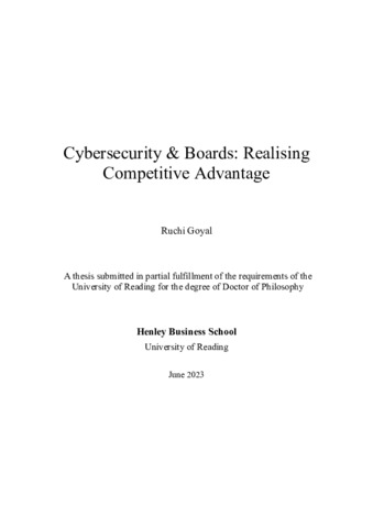 Goyal, R. (2023) Cybersecurity & boards: realising competitive advantage. PhD thesis, University of Reading. doi: 10.48683/1926.00119654
