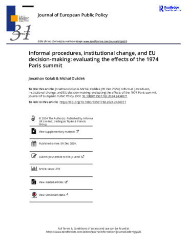 Informal procedures, institutional change, and EU decision-making: evaluating the effects of the 1974 Paris summit.