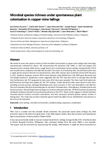 Microbial species richness under spontaneous plant colonisation in copper mine tailings.