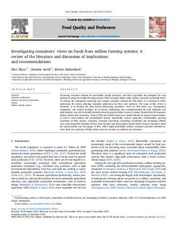 Investigating consumers' views on foods from soilless farming systems: a review of the literature and discussion of implications and recommendations.