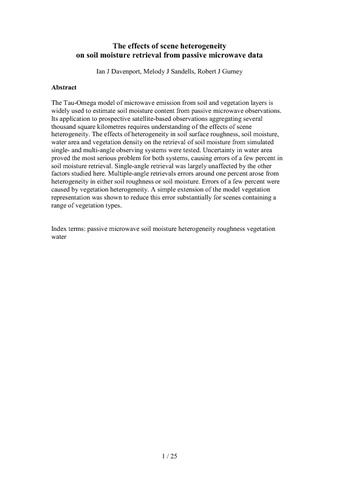 The s–x model of microwave emission from soil and vegetation layers is widely used to estimate soil moisture content from passive microwave observations. Its application to prospective satellite-based observations aggregating several thousand square kilometres requires understanding of the effects of scene heterogeneity. The effects of heterogeneity in soil surface roughness, soil moisture, water area and vegetation density on the retrieval of soil moisture from simulated single- and multi-angle observing systems were tested. Uncertainty in water area proved the most serious problem for both systems, causing errors of a few percent in soil moisture retrieval. Single-angle retrieval was largely unaffected by the other factors studied here. Multiple-angle retrievals errors around one percent arose from heterogeneity in either soil roughness or soil moisture. Errors of a few percent were caused by vegetation heterogeneity. A simple extension of the model vegetation representation was shown to reduce this error substantially for scenes containing a range of vegetation types.