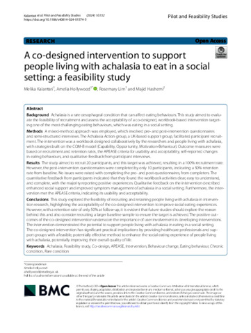 A co-designed intervention to support people living with achalasia to eat in a social setting: a feasibility study