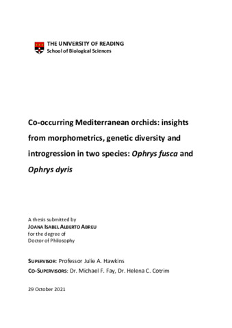 Alberto Abreu, J. I. (2022) Co-occurring Mediterranean orchids: insights from morphometrics, genetic diversity and introgression in two species: Ophrys fusca and Ophrys dyris. PhD thesis, University of Reading. doi: 10.48683/1926.00119941