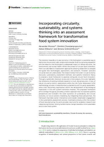 Incorporating circularity, sustainability, and systems thinking into an assessment framework for transformative food system innovation.