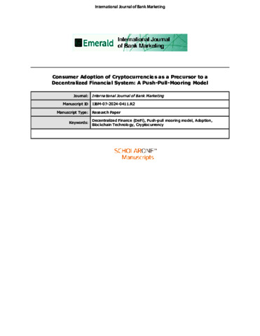 Wong, P., Leung, W. K.S., Vanharanta, M. and Wan, C. (2025) Consumer adoption of cryptocurrencies as a precursor to a decentralized financial system: a push-pull-mooring model. International Journal of Bank Marketing. ISSN 0265-2323 doi: 10.1108/IJBM-07-2024-0411