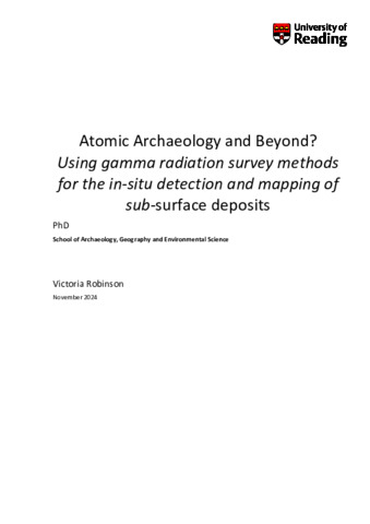 Robinson, V. (2024) Atomic archaeology and beyond? Using gamma radiation survey methods for the in-situ detection and mapping of sub-surface deposits. PhD thesis, University of Reading. doi: 10.48683/1926.00120252