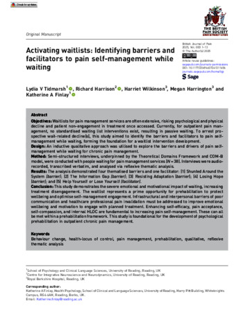 Activating waitlists: identifying barriers and facilitators to pain self-management while waiting.