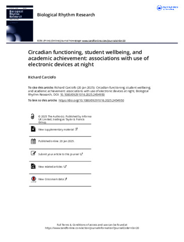 Circadian functioning, student wellbeing, and academic achievement: associations with use of electronic devices at night.