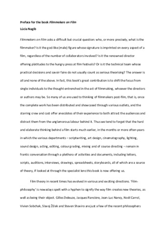 Filmmakers' reflection about their own films or about cinema has been a constant in the history of the cinematographic art. Yet, filmmakers have been either sidelined in critical discussions on film or have had little relevance within Film Theory and, therefore, in film analysis - fields that have leaned towards theoretical hooks derived from other areas. The Filmmakers on Film approach intends to brig to the fore a proposal that complements the current trends in Film Theory - a theoretical exercise that relocates the place of the filmmaker in the discussion.
