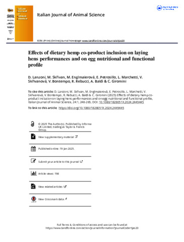 Effects of dietary hemp co-product inclusion on laying hens performances and on egg nutritional and functional profile.