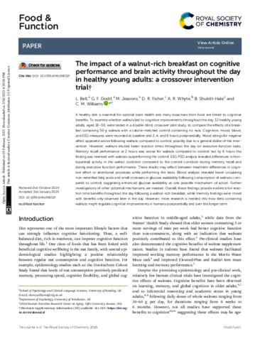 The impact of a walnut-rich breakfast on cognitive performance and brain activity throughout the day in healthy young adults: a crossover intervention trial.