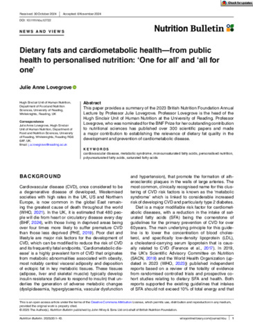 This paper provides a summary of the 2023 British Nutrition Foundation AnnualLecture by Professor Julie Lovegrove. Professor Lovegrove is the head of theHugh Sinclair Unit of Human Nutrition at the University of Reading. ProfessorLovegrove, who was nominated for the BNF Prize for her outstanding contributionto nutritional sciences has published over 300 scientific papers and madea major contribution to establishing the relevance of dietary fat quality in thedevelopment and prevention of cardiometabolic disease.