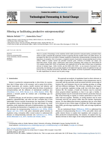 Belitski, M. and Desai, S. (2024) Filtering or facilitating productive entrepreneurship? Technological Forecasting and Social Change, 206. 123497. ISSN 1873-5509 doi: 10.1016/j.techfore.2024.123497